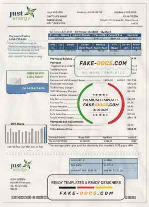 Germany Just Energy utility bill template in Word and PDF format (.doc and .pdf)