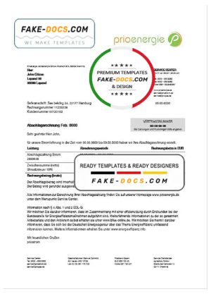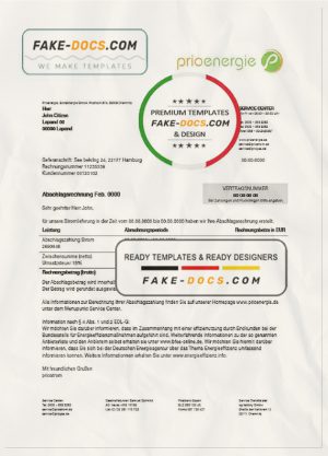 Germany Prioenergie proof of address utility bill template in Word and PDF format