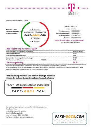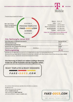 Germany T Mobile utility bill template in Word and PDF format