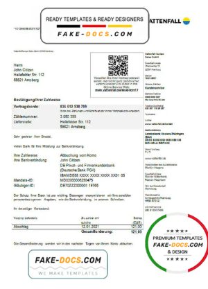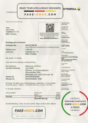 Germany VATTENFALL utility bill template in Word and PDF format (in German language)
