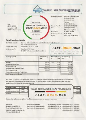 Germany Wavwasser utility bill template in Word and PDF format
