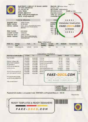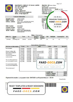 Ghana Electricity Company of Ghana utility bill template in Word and PDF format