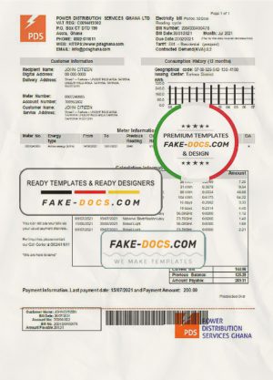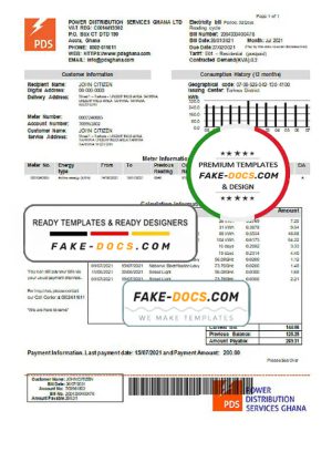 Ghana PDS electricity utility bill template in Word and PDF format