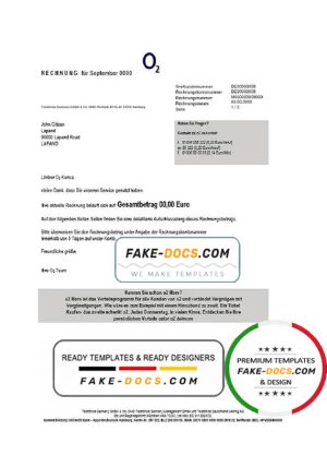 Germany RECHNUNG O2 utility bill template in Word and PDF format