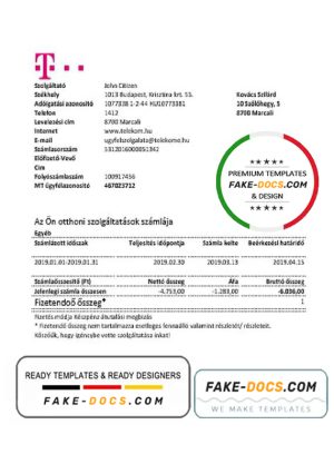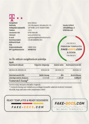 Hungary Magyartel utility bill template in Word and PDF format, fully editable