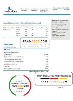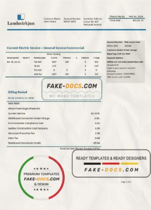 Iceland National Power Company of Iceland Landsvirkjun electricity utility bill template in Word and PDF