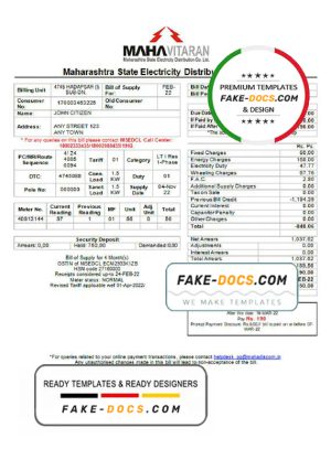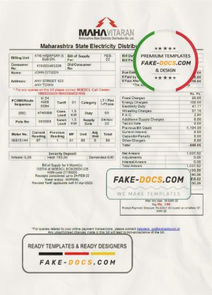India Mahavitaran Co Ltd utility bill template in Word and PDF format
