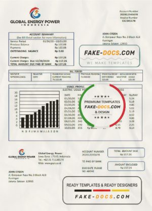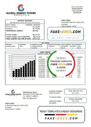 Indonesia Global Energy Power utility bill template in Word and PDF format