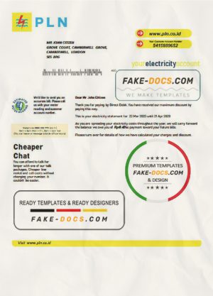 Indonesia PLN electricity utility bill template in Word and PDF format