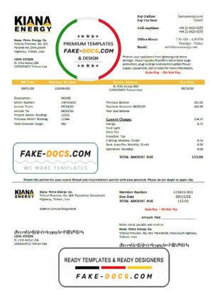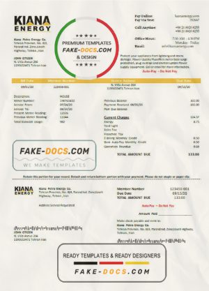 Iran Kiana Petro Energy Co utility bill template in Word and PDF format