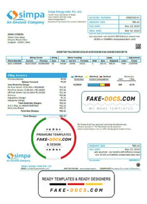 India Simpa Energy India Pvt. Ltd utility bill template in Word and PDF format