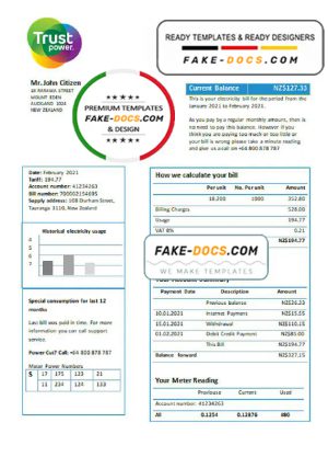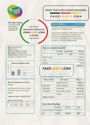 New Zealand Trustpower utility bill template in Word and PDF format