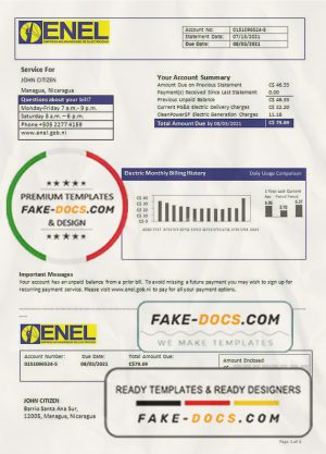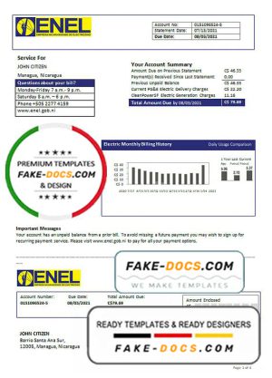 Nicaragua Nicaraguan Electricity Company ENEL electricity utility bill template in Word and PDF format