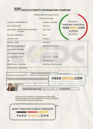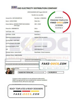 Nigeria Eko Electricity Distribution Company (EKEDC) utility bill template in Word and PDF format