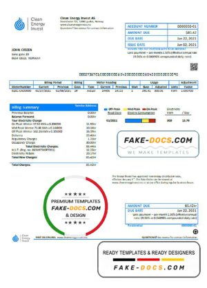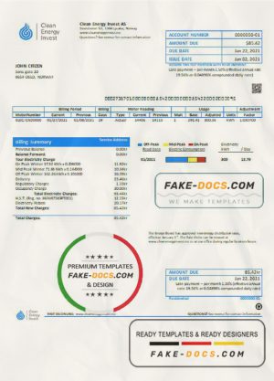 Norway Clean Energy Invest AS utility bill template in Word and PDF format, good for address prove