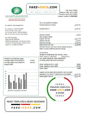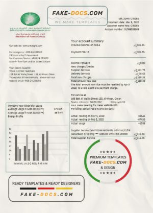 Oman Electricity Transmission Company electricity utility bill template in Word and PDF format