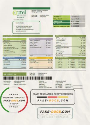 Pakistan PTCL utility bill template in Word and PDF format
