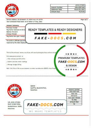 Pakistan Quetta Electric Supply Company electricity utility bill template in Word and PDF format