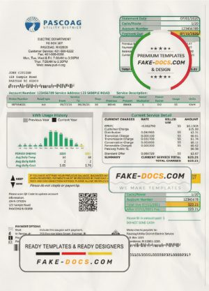 USA Rhode Island Pascoag Utility District utility bill template in Word and PDF format