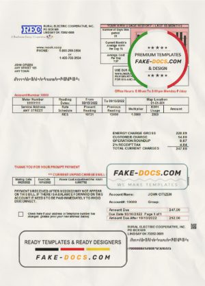 USA Rural Electric Cooperative utility bill template in Word and PDF format