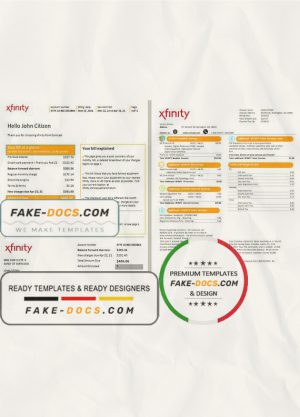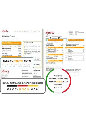 USA San Francisco Xfinity Comcast utility bill template in Word and PDF format, 2 pages