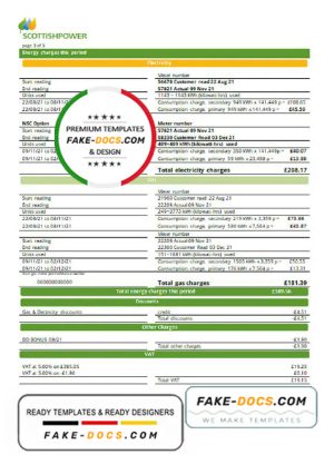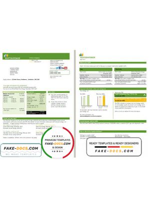 USA ScottishPower utility bill template in Word and PDF format (3 pages)