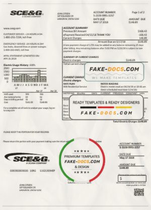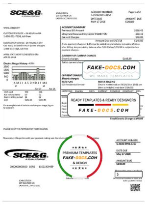 USA South Carolina SCE&G electricity utility bill template in Word and PDF format