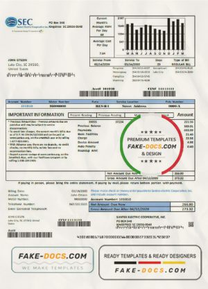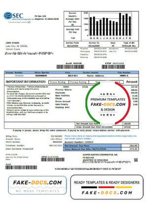 USA South Carolina Santee Electric Cooperative (SEC) proof of address utility bill template in Word and PDF format