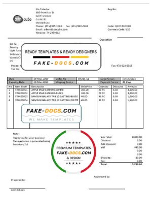 USA San Francisco Xincube utility bill template in Word and PDF format