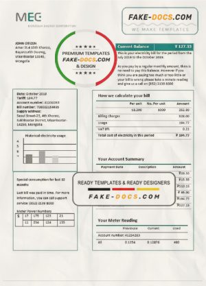 Mongolia Energy Corporation (MEC) electricity utility bill template in Word and PDF format