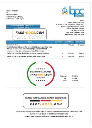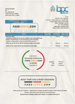 Nepal Butwal Power Company Limited electricity utility bill template in Word and PDF format