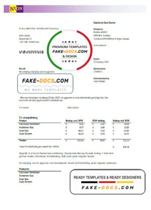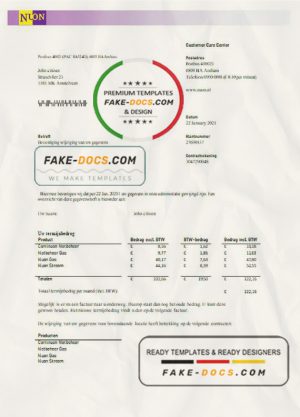 Netherlands NUON gas utility bill template in Word and PDF format in Dutch language