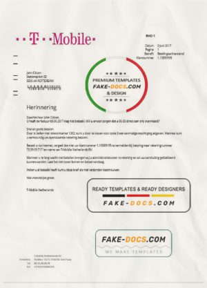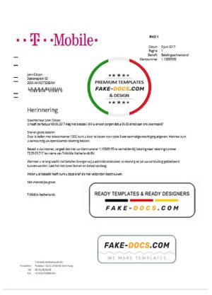 Netherlands T-Mobile utility bill template in Word and PDF format