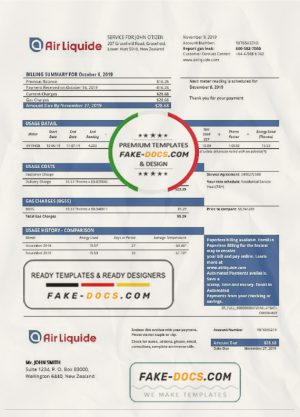 New Zealand Air Liquide gas utility bill template in Word and PDF format