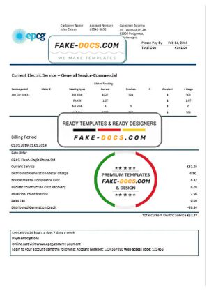 Montenegro Elektroprivreda Crne Gore (EPCG) electricity utility bill template in Word and PDF format
