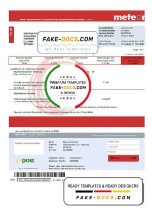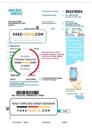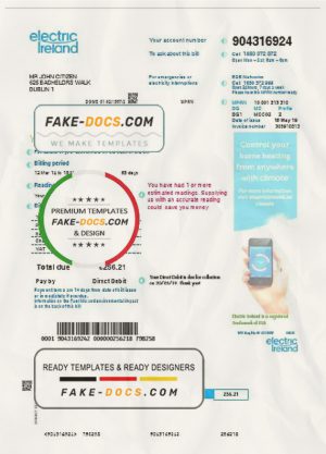 Ireland Electric Ireland utility bill template in Word and PDF format