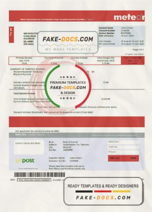 Ireland Virgin Media utility bill template in Word and PDF format, version 2