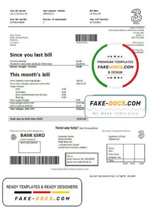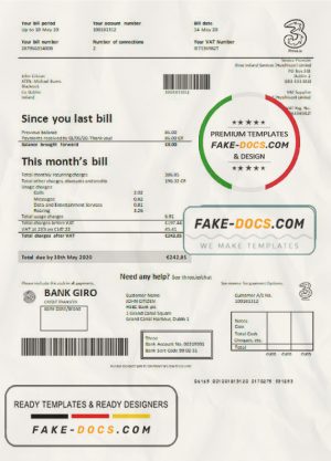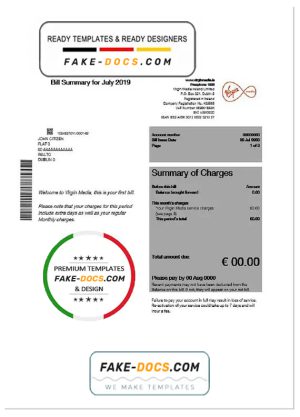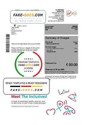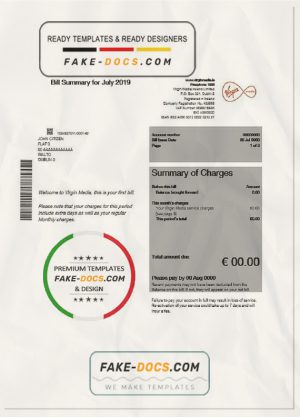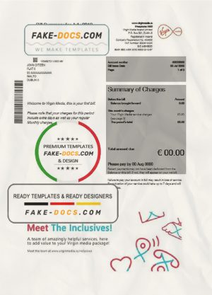 Ireland Virgin Media utility bill template editable in Word and PDF, version 1