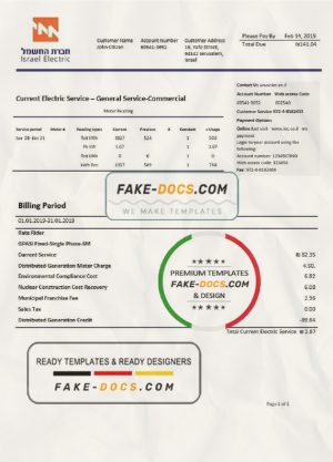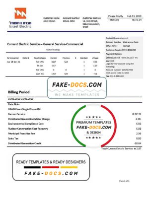 Israel Electric Corporation electricity utility bill template in Word and PDF format (.doc and .pdf)