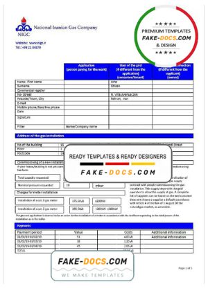 Iran National Iranian Gas Company gas utility bill template in Word and PDF format