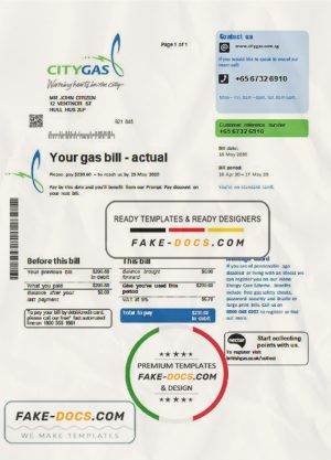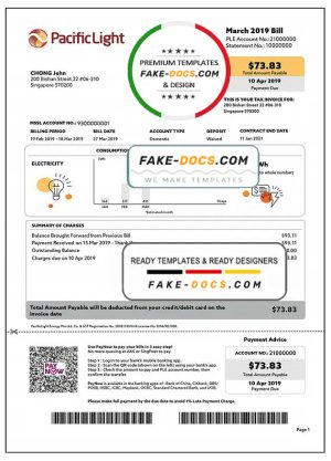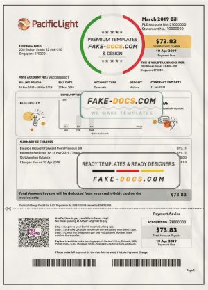 Singapore Pacific Light electricity utility bill template in Word and PDF format