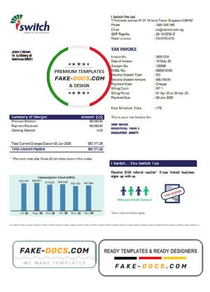 Singapore I Switch electricity utility bill template in Word and PDF format
