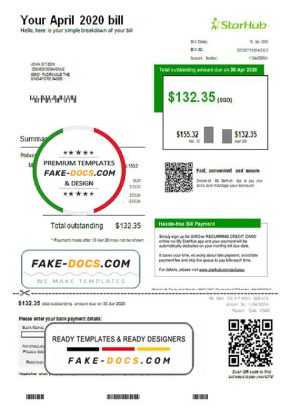 Singapore SP Group utility bill template in Word and PDF format (2 pages)