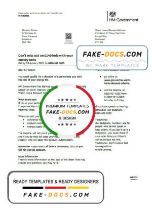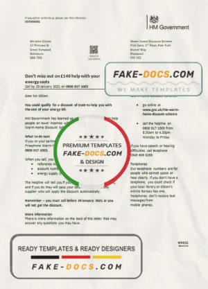 United Kingdom HM Government Warm Home Energy utility bill template in Word and PDF format
