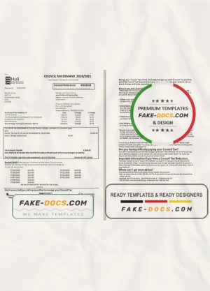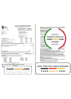 United Kingdom Hull City Council utility bill template in Word and PDF format, 2 pages