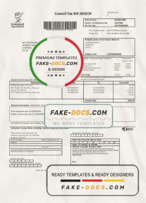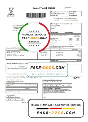 United Kingdom Liverpool City Council tax bill template in Word and PDF format