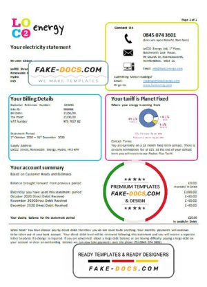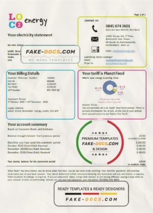United Kingdom LoCO2 Energy utility bill template in Word and PDF format