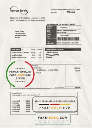 United Kingdom London of Borough of Newham council tax bill template in Word and PDF format
