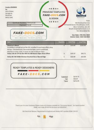 United Kingdom MJ Electrical proof of address utility bill template in Word and PDF format