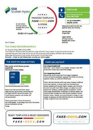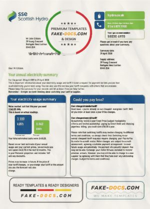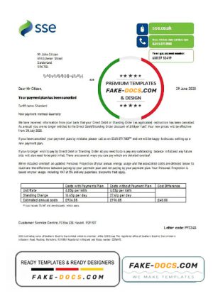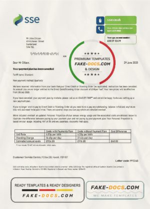 United Kingdom SSE Energy utility bill template in Word and PDF format, version 2